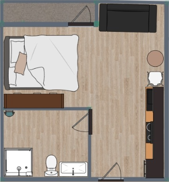 ประเภทแบบห้อง : Type A : ห้องสตูดิโอ