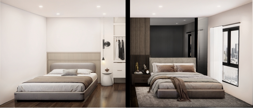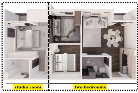 แบบ 3 มิติ แบบห้องสตูดิโอ และ แบบ 2 ห้องนอน