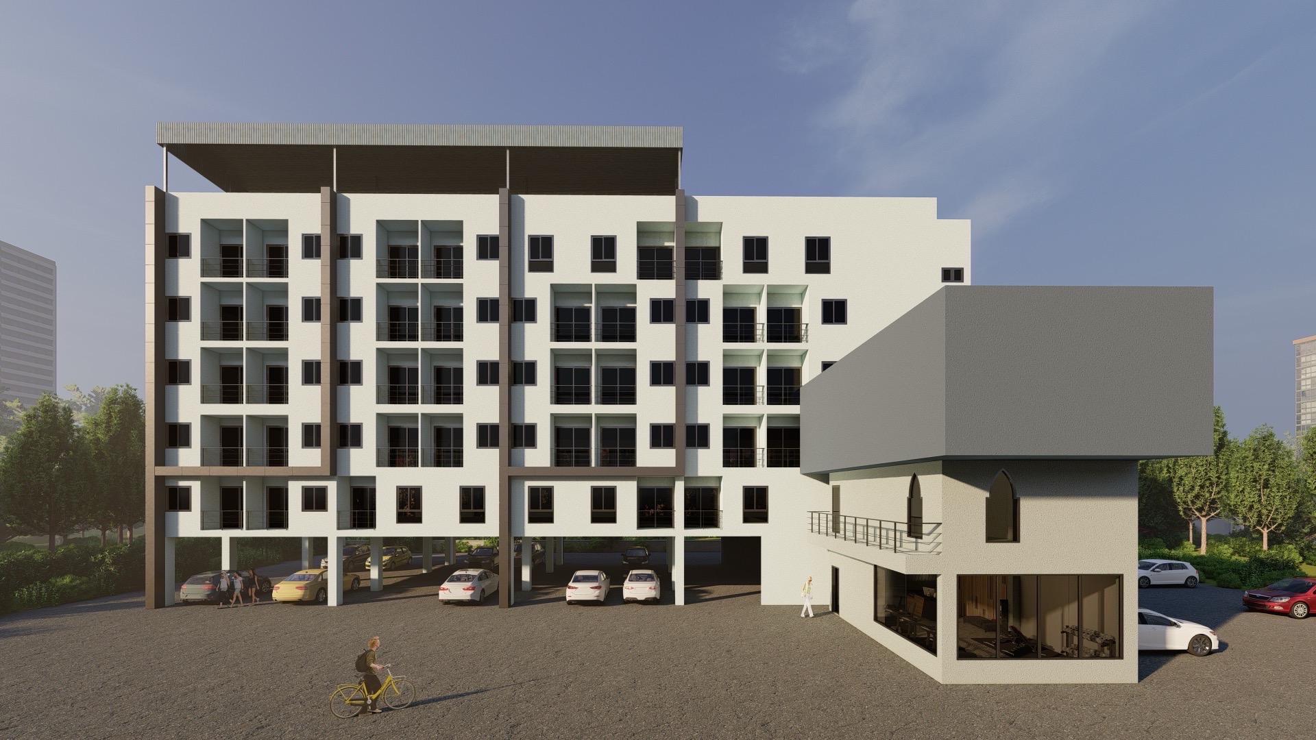 อาคาร Low Rise สูง 6 ชั้น 71 ยูนิต มีสวนหย่อมบนดาดฟ้า